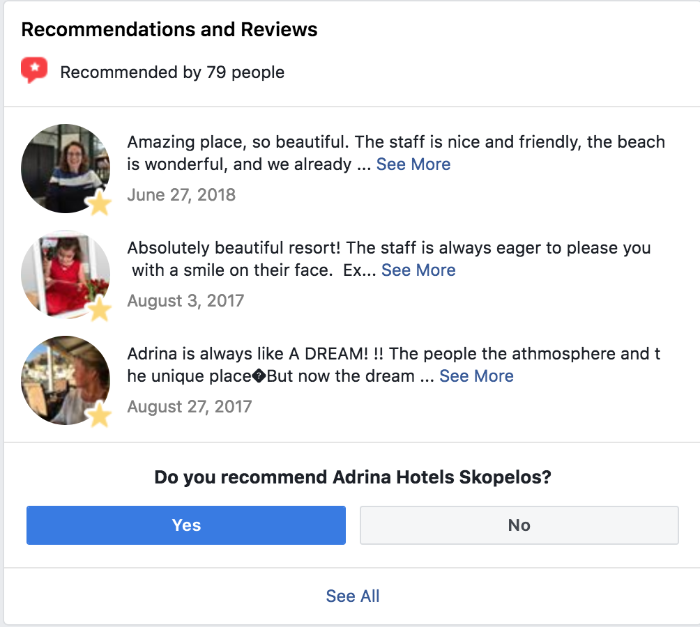 Είτε μέσω προσφορών , είτε μέσω φωτογραφιών είτε μέσω κριτικών από επισκέπτες, το Facebook σε βοηθά να αυξήσεις την απήχηση του ξενοδοχείου σου στο κοινό.