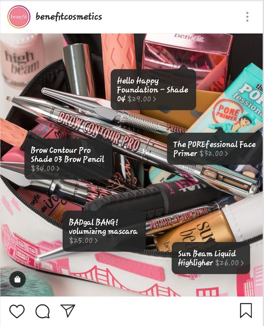 Αυτές οι δημοσιεύσεις έχουν ένα μικρό εικονίδιο μιας shopping bag που εμφανίζεται στη μια γωνία της οθόνης. Όταν ο χρήστης δει το εικονίδιο μπορεί να πατήσει επάνω του και να δει λεπτομέρειες για το προϊόν.