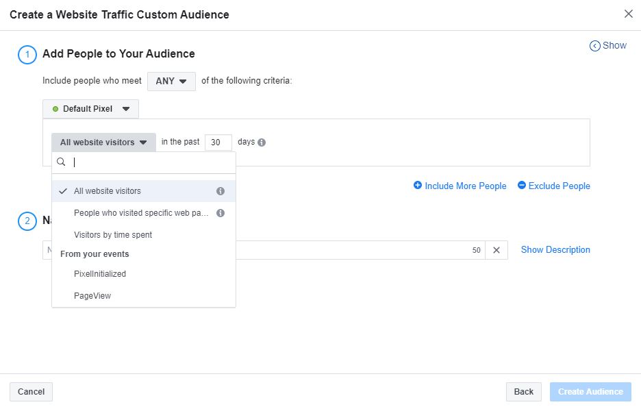 Έτσι θα μπορείς να αξιοποιήσεις και να επαναστοχεύσεις τους ανθρώπους που επισκέπτονται το website σου και να τους γρουπάρεις σε διαφορετικά custom audiences ανάλογα την συμπεριφορά τους σε αυτό. Π.χ αυτούς που το επισκέφθηκαν τις τελευταίες 30 ημέρες, ή που μπήκαν σε κάποια συγκεκριμένη σελίδα κτλ.